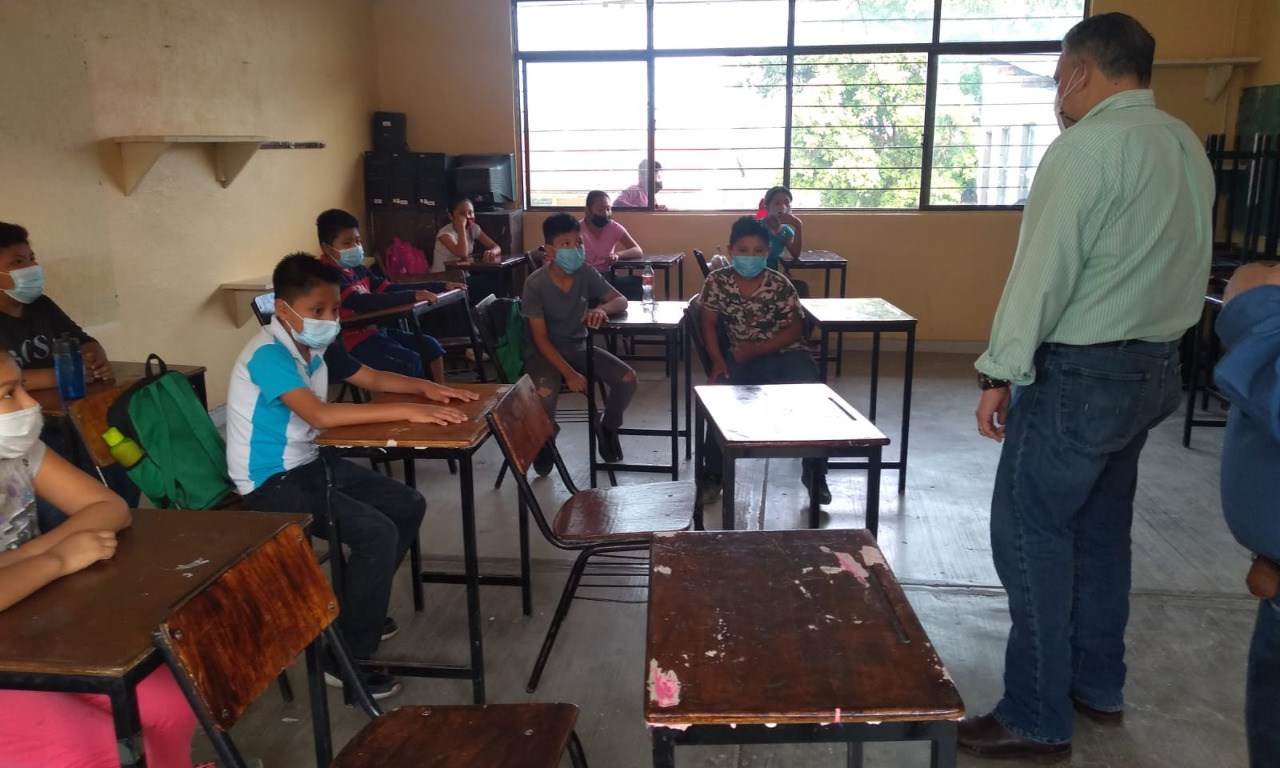 Al llegar a la Telesecundaria “Ignacio Zaragoza”, se comprometió a arreglar la bomba y el sistema eléctrico para conectarla, y pueda haber agua en los sanitarios, para evitar sigan con el acarreo en cubetas. Les hizo la observación de que se contará con una nueva bomba para el sistema hidráulico Tanchachín, y evitar se continúe con el desabasto de agua potable.