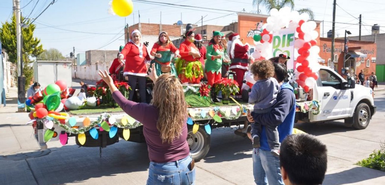 A fin de seguir llevando sonrisas a los niños del municipio de Soledad de Graciano Sánchez, este lunes, la presidenta del Sistema Municipal DIF, María del Pilar Cardona Reyna, recorrió las calles del municipio en compañía de sus colaboradores que participaron en la tradicional caravana navideña organizada por esta área del Ayuntamiento.