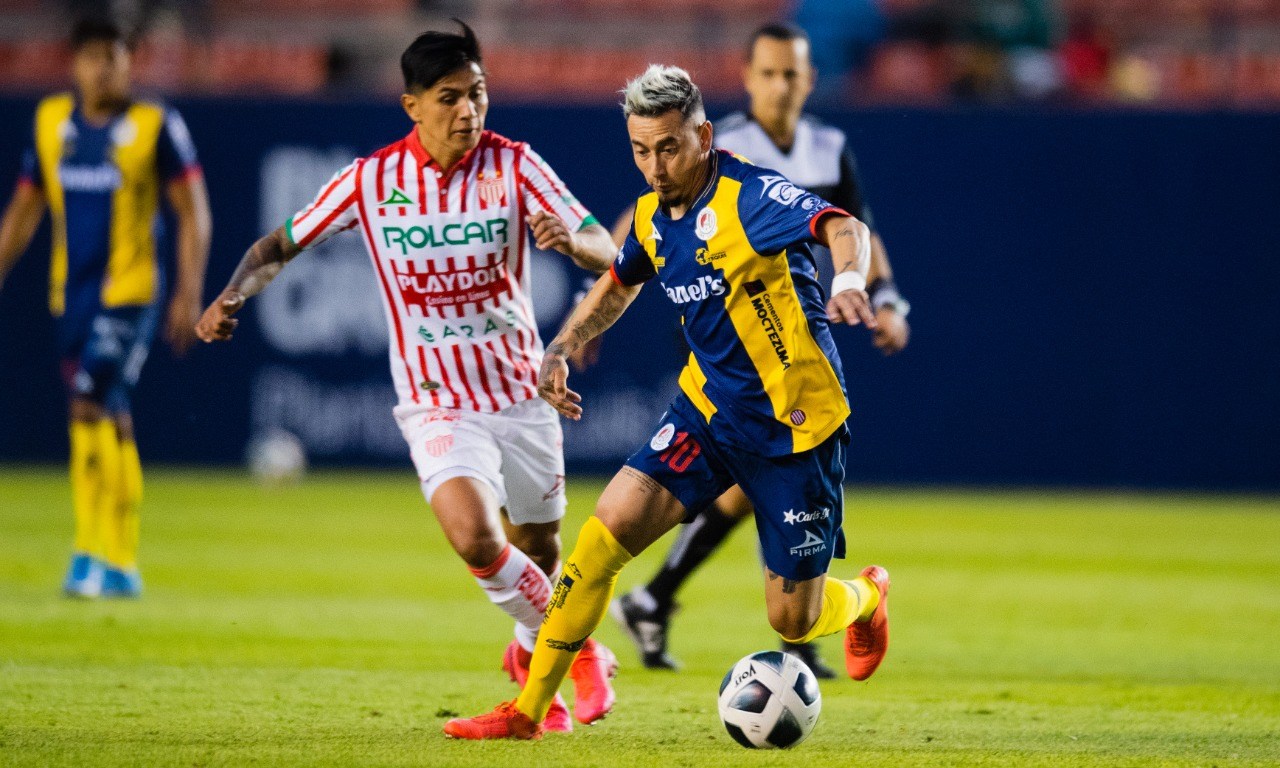 balón por encima del arquero necaxista.