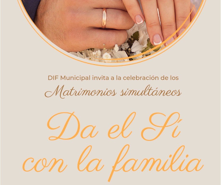 El DIF Municipal invita a todas aquellas parejas interesadas en contraer nupcias o regularizar su situación conyugal, a registrarse gratuitamente para la celebración de bodas colectivas el próximo 12 de febrero del 2022.