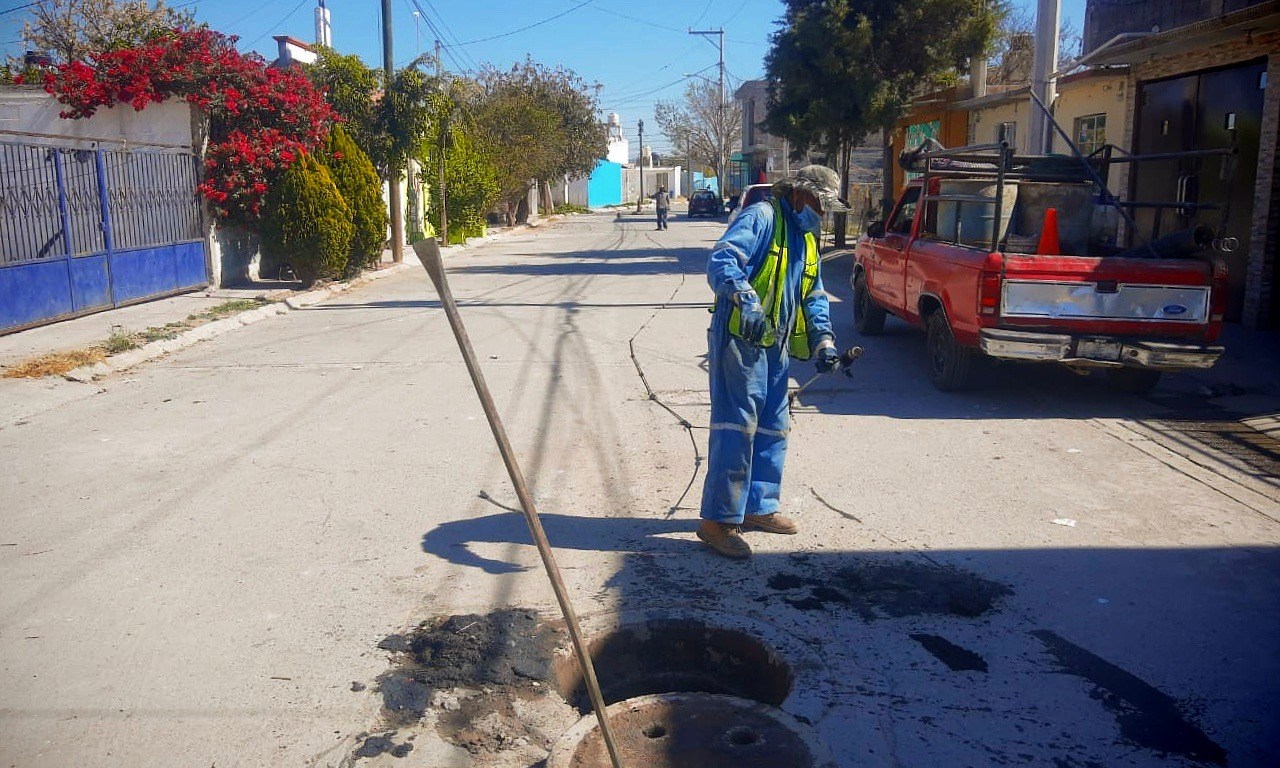 Personal operativo de Interapas Soledad realizó el mantenimiento integral a las redes de drenaje, se sondearon 6 mil 918 metros de tubería con cuadrillas de varilleo y 2 mil 771 metros a través del camión hidroneumático para desazolve.