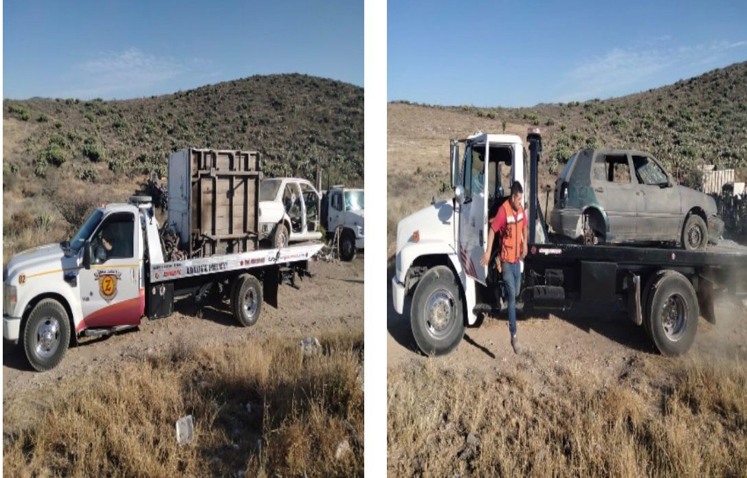 Agentes de la Policía Estatal en coordinación con personal de la FGE, desmantelaron un negocio conocido como “Yonke” donde se resguardaban vehículos con reporte de robo además de piezas de dudosa procedencia.
