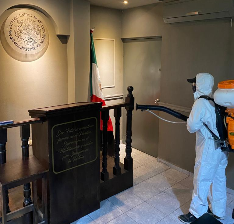 Explicó que estas acciones, son instrucciones del alcalde David Armando Medina Salazar para que se mantengan desinfectadas todas las áreas donde acude la población a realizar algún trámite.