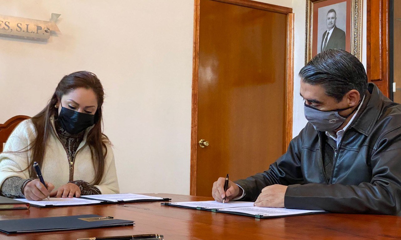 Este jueves en la sala de cabildo del Ayuntamiento de Villa de Reyes, el Rector de la Universidad Autónoma de San Luis Potosí, Alejandro Javier Zermeño Guerra y Erika Briones Pérez, alcaldesa de dicho municipio, firmaron un convenio marco de colaboración con el objetivo de impulsar acciones que beneficien a ambas instituciones y a la población en general.