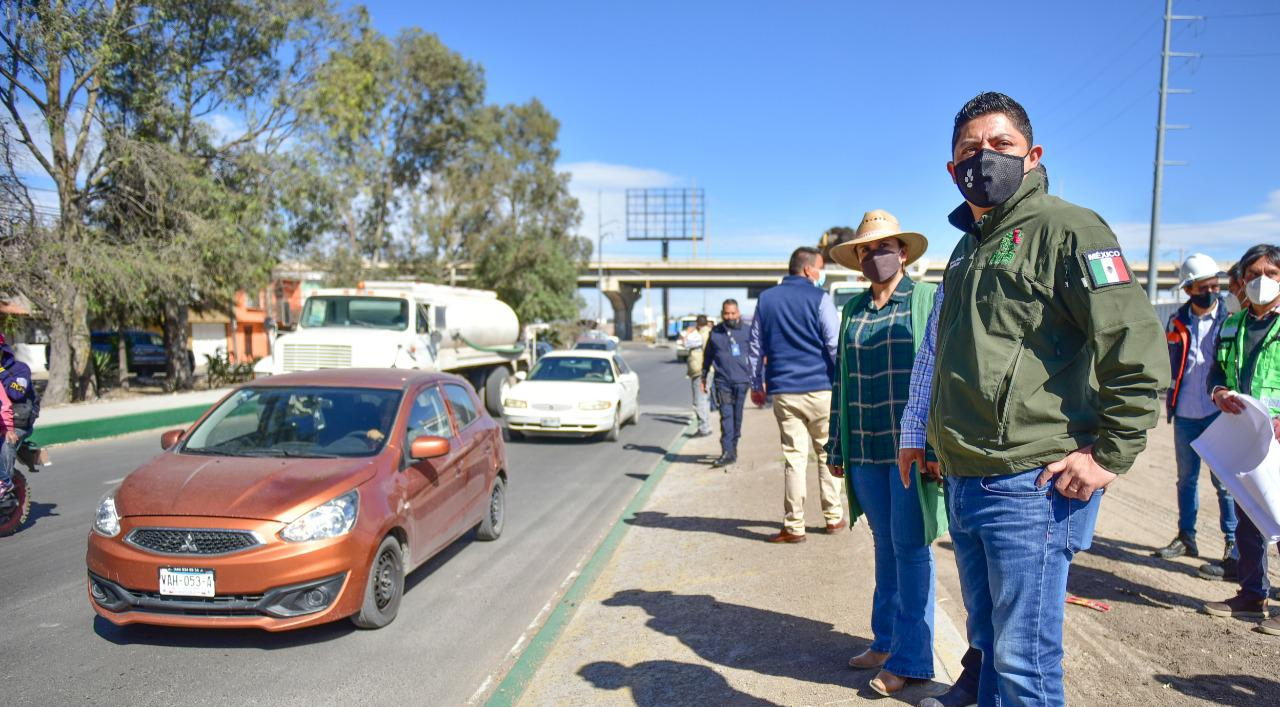 - El Gobernador potosino supervisó los trabajos de rehabilitación de esta importante y transitada vialidad, abandonada por las anteriores autoridades.