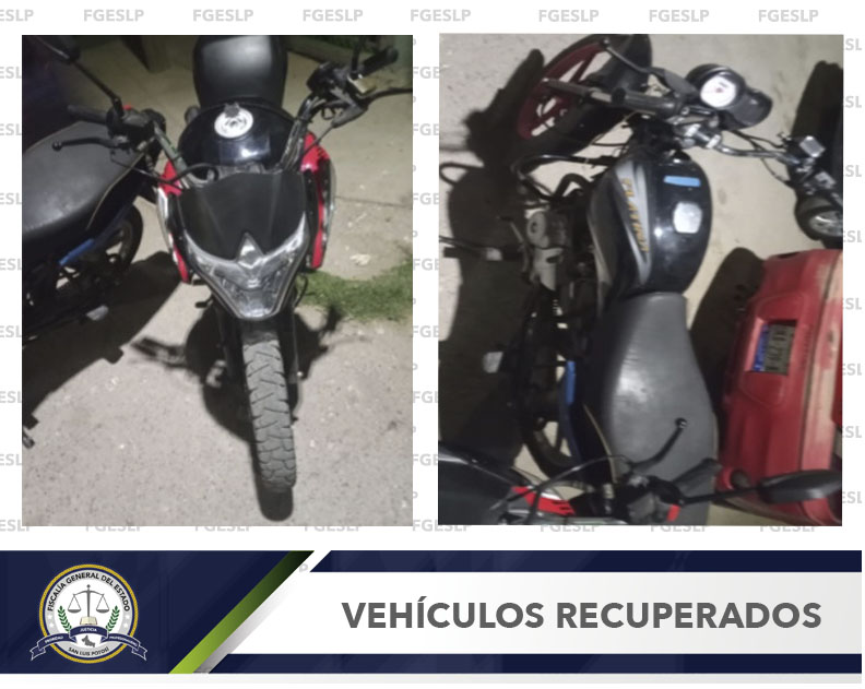 La Policía de Investigación (PDI) efectuó la recuperación de dos motocicletas en la Capital potosina, mismas que estaban reportadas como robadas, tras las denuncias interpuestas por las partes afectadas.