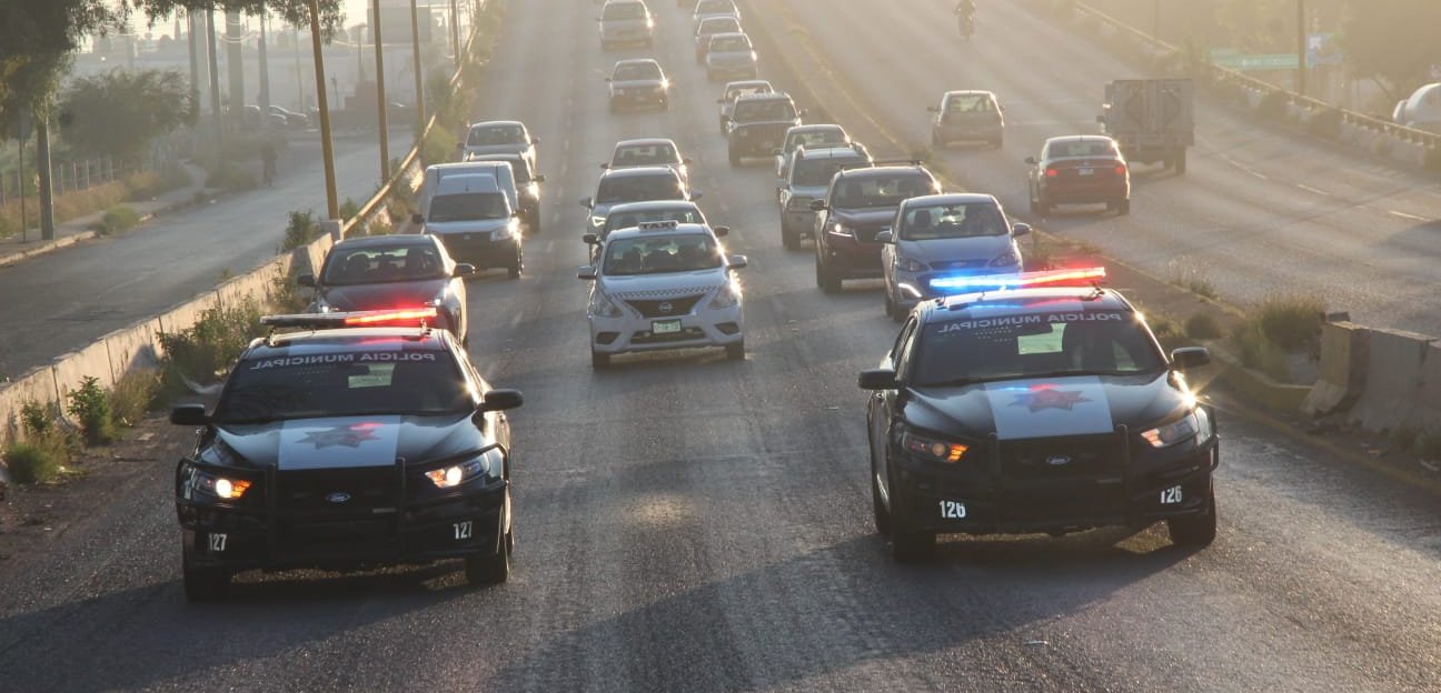Los patrullajes se realizan de lunes a viernes de 6 a 8 de la mañana y por las tardes de 18:00 a 20:00 horas. Dos unidades con códigos visibles regulan la velocidad a 60 kilómetros por hora en avenidas primarias como Carretera a Rioverde y Carretera a Matehuala.