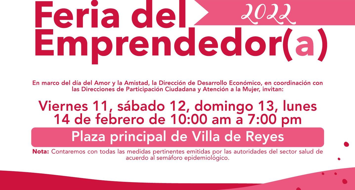 En Villa de Reyes se llevará a cabo la Feria del Emprendedor y Emprendedora este próximo fin de semana.