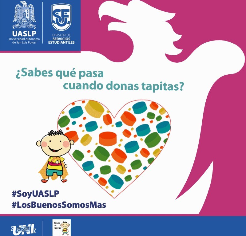 Con la finalidad de apoyar a familias de jóvenes, adolescentes y niños de escasos recursos que padecen cáncer, el programa Univalores de la División de Servicios Estudiantiles de la Universidad Autónoma de San Luis Potosí (UASLP) tiene en marcha la campaña “Tapízate el corazón” que se desarrolla de forma permanente en colaboración con el Banco de Tapitas A.C.