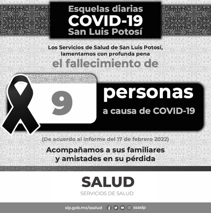 En cuanto a decesos, se reportan nueve nuevos para un total de siete mil 322 muertes. Las defunciones de este día corresponden a cuatro mujeres y cinco hombres entre los 32 y los 86 años de edad. Hasta este día, permanecen hospitalizadas 127 personas, de las cuales 17 requieren de respiración asistida.