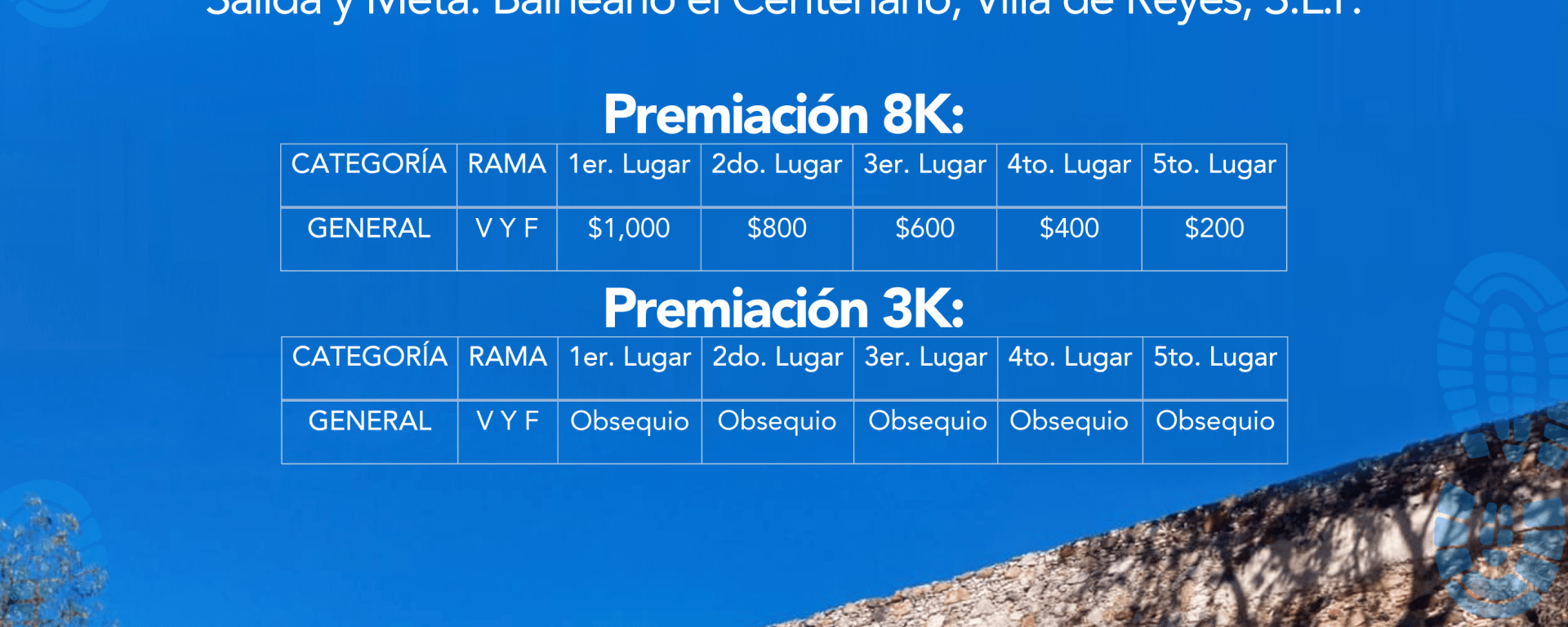 Los corredores podrán participar tanto en la rama varonil y femenil, ya sea en la justa de 3.0 u 8.0 kilómetros, cuyos competidores recibirán medalla conmemorativa y tendrán derecho al uso de la alberca de este balneario.