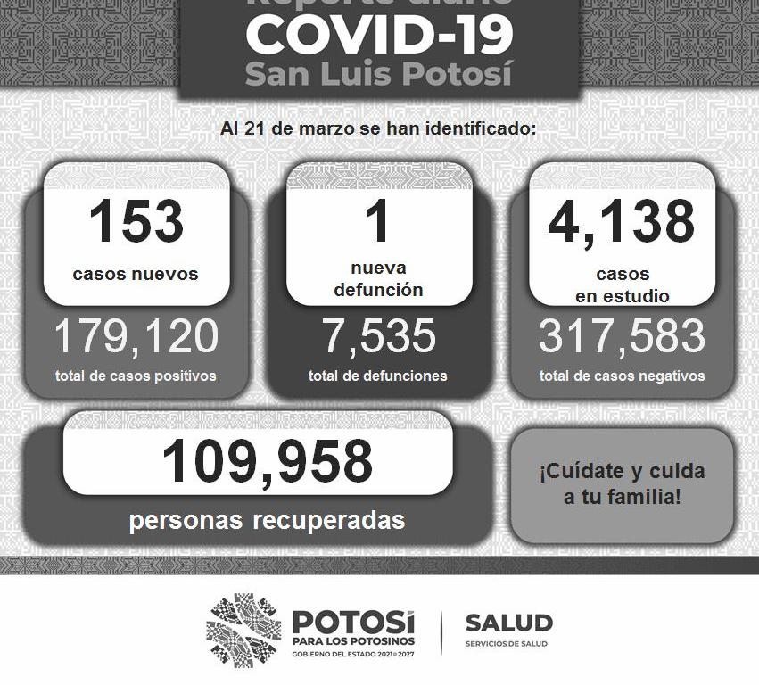 El Comité Estatal para la Seguridad en Salud y los Servicios de Salud, en cuanto al Informe diario de casos Covid-19 informan que, se dan a conocer 153 nuevos contagios en la Entidad, registrándose hasta este día 179 mil 120 casos totales de este padecimiento.