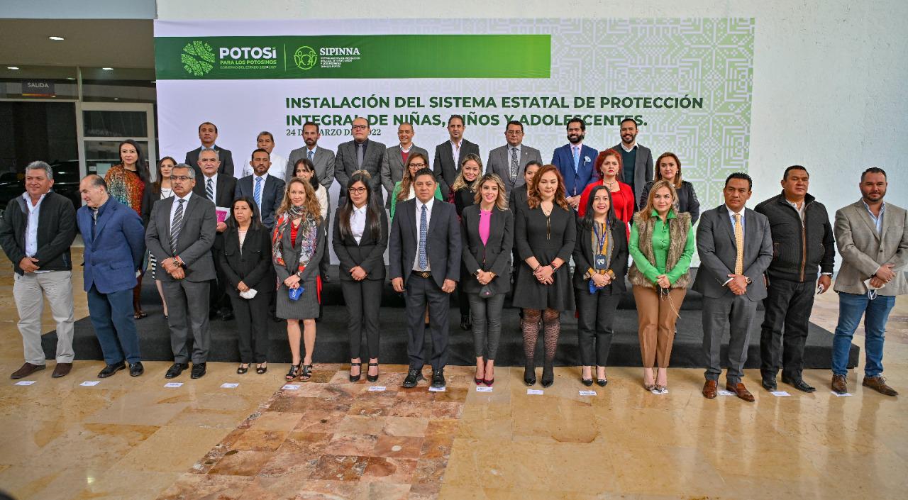 El Gobernador del Estado, Ricardo Gallardo Cardona instaló el Sistema Estatal de Protección Integral de Niñas, Niños y Adolescentes San Luis Potosí (SIPINNA), reafirmando de esta manera el compromiso del nuevo Gobierno estatal para fortalecer políticas públicas, programas, obras y acciones a favor del desarrollo integral de la niñez y juventud potosinas.