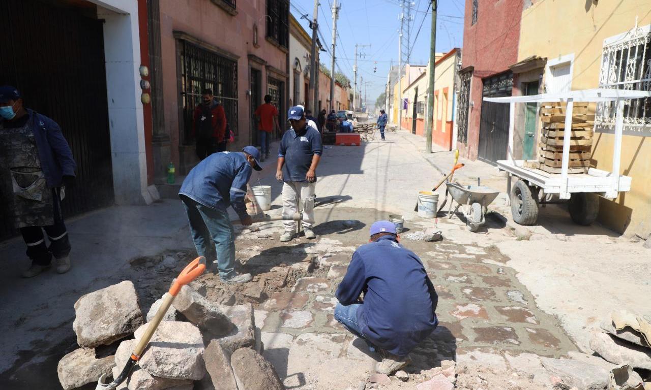 En dos turnos se trabajó la reposición de 257 piezas de adoquín y 35 de cantera específicamente en el Centro Histórico de San Luis Potosí, en las calles de Carranza con la calle de Ignacio Aldama; así como Aldama de Carranza a Madero e Independencia esquina Iturbide. Estas vialidades integran la ruta de la Procesión del Silencio.