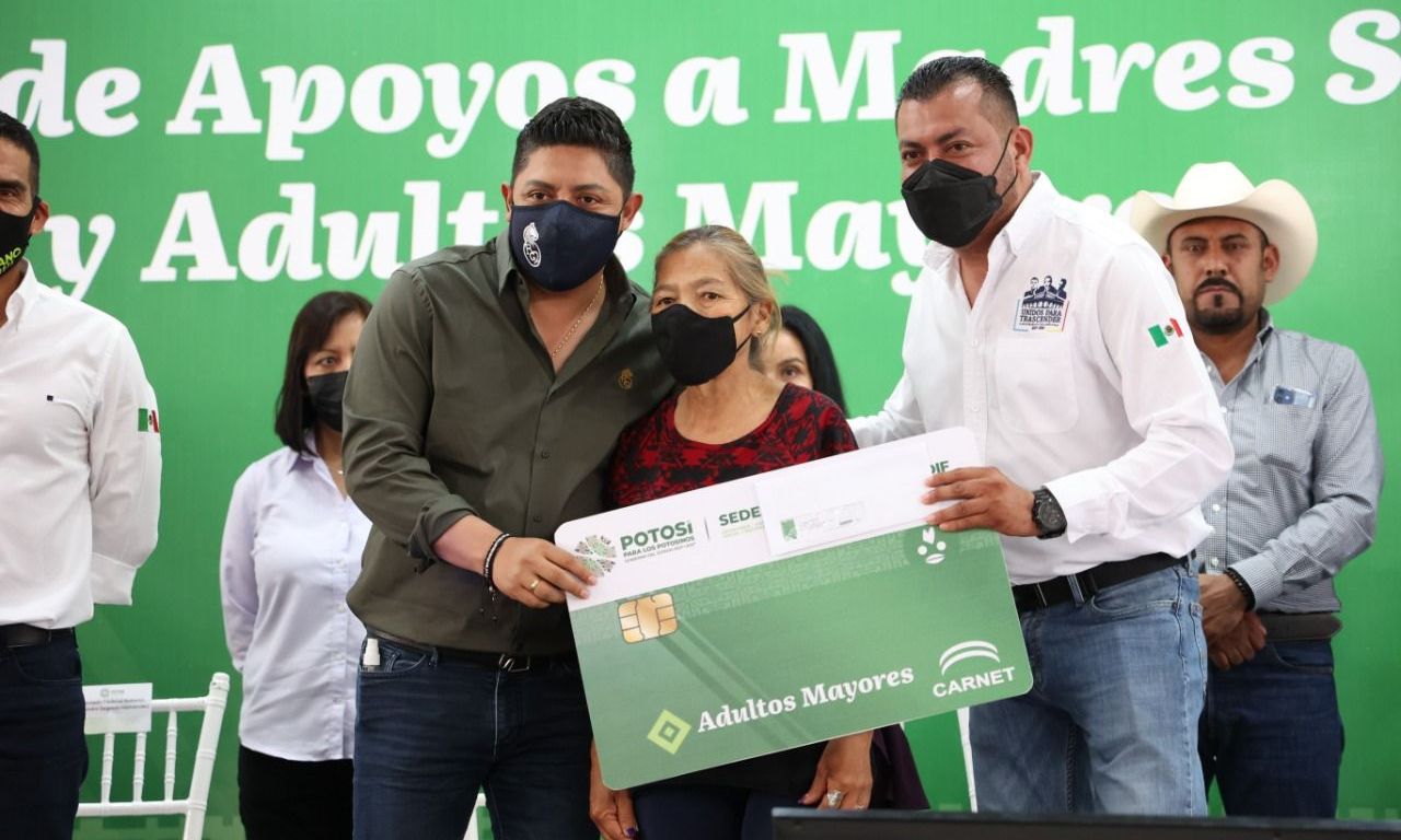 Gallardo Cardona encabezó una entrega más de estos apoyos económicos a municipios del Altiplano: Matehuala, Cedral, Charcas, Villa de Guadalupe, Villa de la Paz y Vanegas, demarcaciones que, de acuerdo a datos del Consejo Estatal de Población (COESPO), agrupan a más de dos mil 800 madres solteras y más de 21 mil personas de la tercera edad, quienes serán apoyados directamente por el nuevo Gobierno.