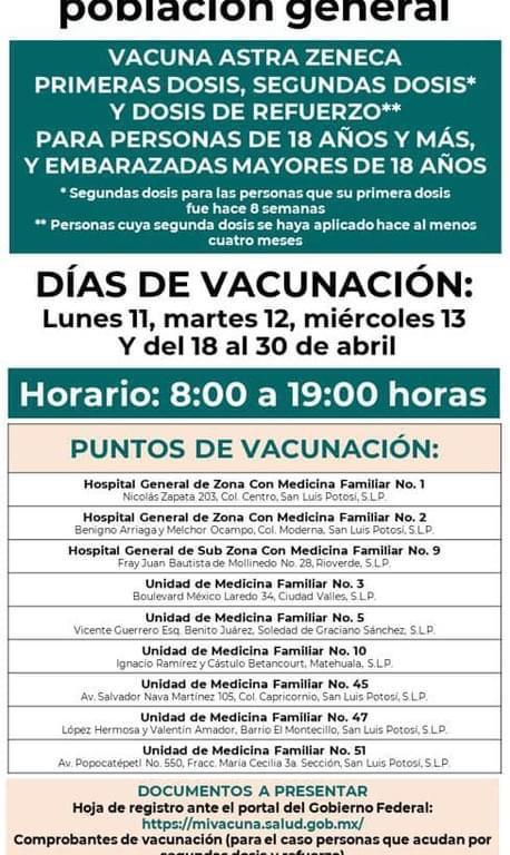 El Comité Estatal para la Seguridad en Salud y el Comité Estatal de Vacunación contra Covid-19, hacen un llamado a las potosinas y potosinos de 18 años en adelante a que acudan a vacunarse contra el virus, ya que es una medida de prevención, que de contagiarse puede ser determinante para cursar la enfermedad de manera menos grave y evitar la hospitalización o morir.