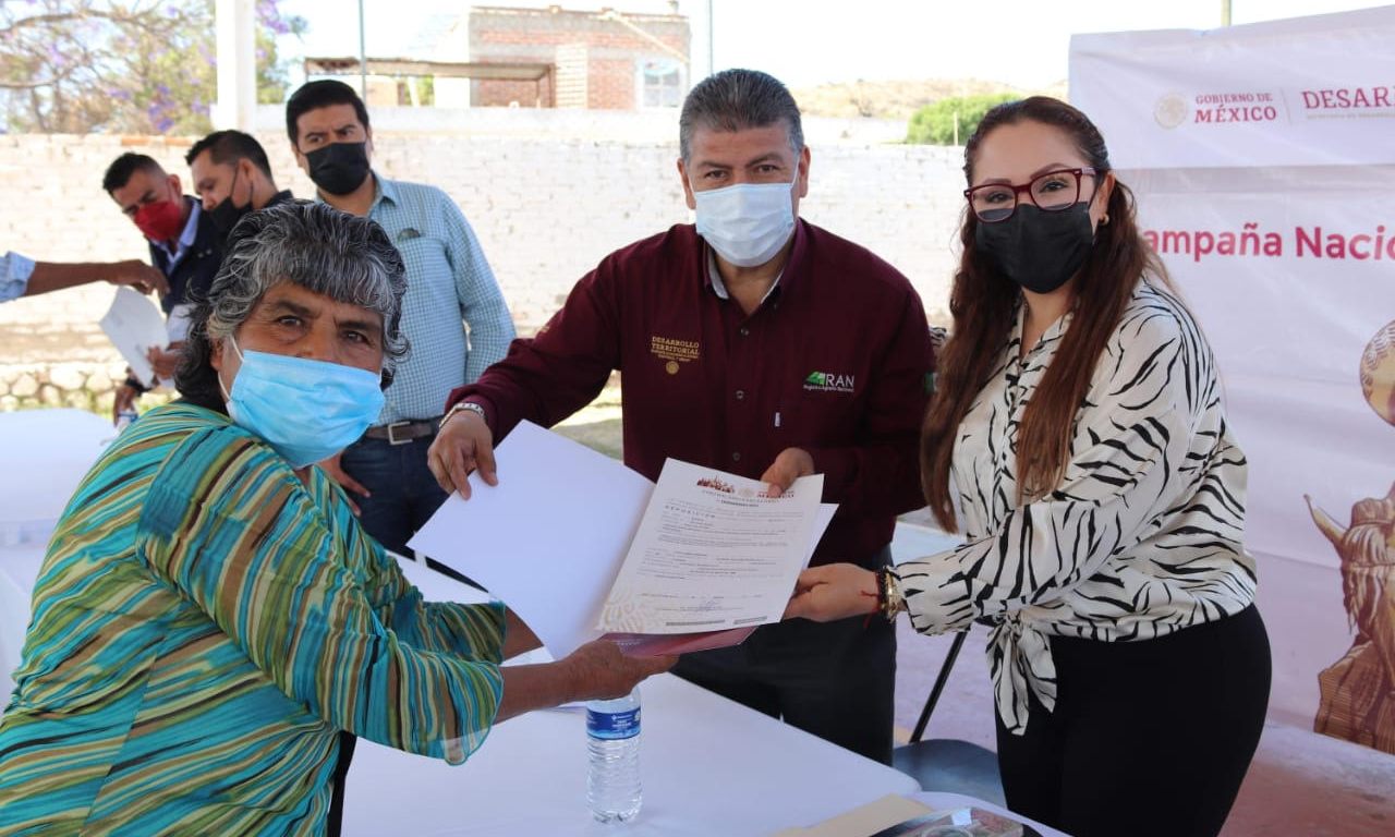 Por su parte, el delegado del RAN indicó que esta Campaña Nacional de Entrega de Documentos agrarios es un acto de justicia social encaminada a materializar los derechos de los sujetos agrarios que viven en territorio de propiedad social, misma que hoy beneficia a 63 familias.
