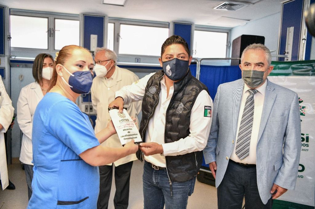 Agregó que en el nuevo San Luis el Gobierno estatal atenderá la problemática de salud pública de lleno, y con el arranque de la Central de Mezclas, hace días, poco más de tres mil quimioterapias en personas adultas y mil en niñas y niños serán otorgadas durante el presente año.