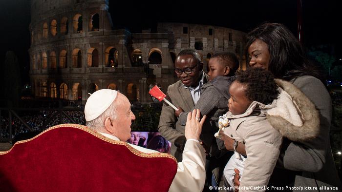 El papa Francisco no pudo oficiar la Vigilia Pascual por un dolor en la rodilla derecha que no le permite estar mucho tiempo de pie y en su lugar lo hizo el cardenal Giovanni Battista Re en la basílica de San Pedro este Sábado Santo (16.04.2022).