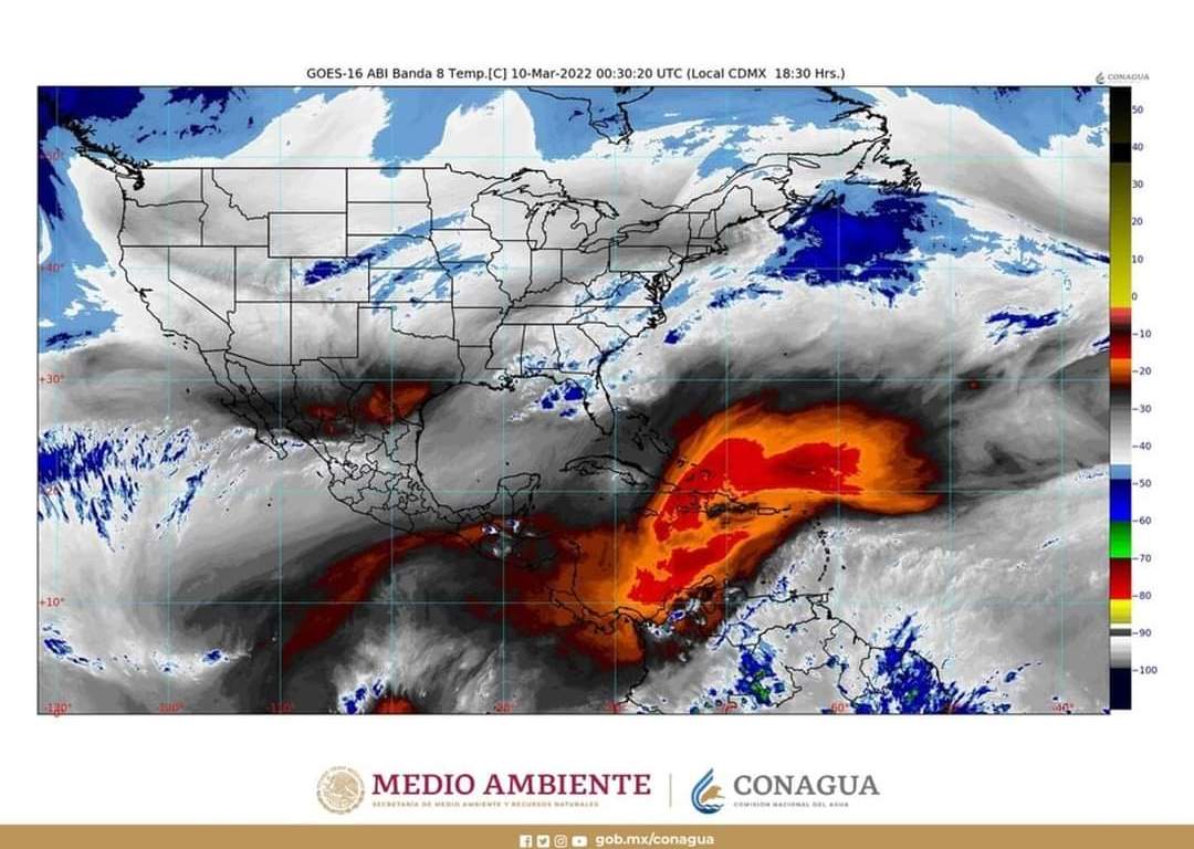 Un segundo canal de baja presión, ubicado en el sureste de México, y la entrada de