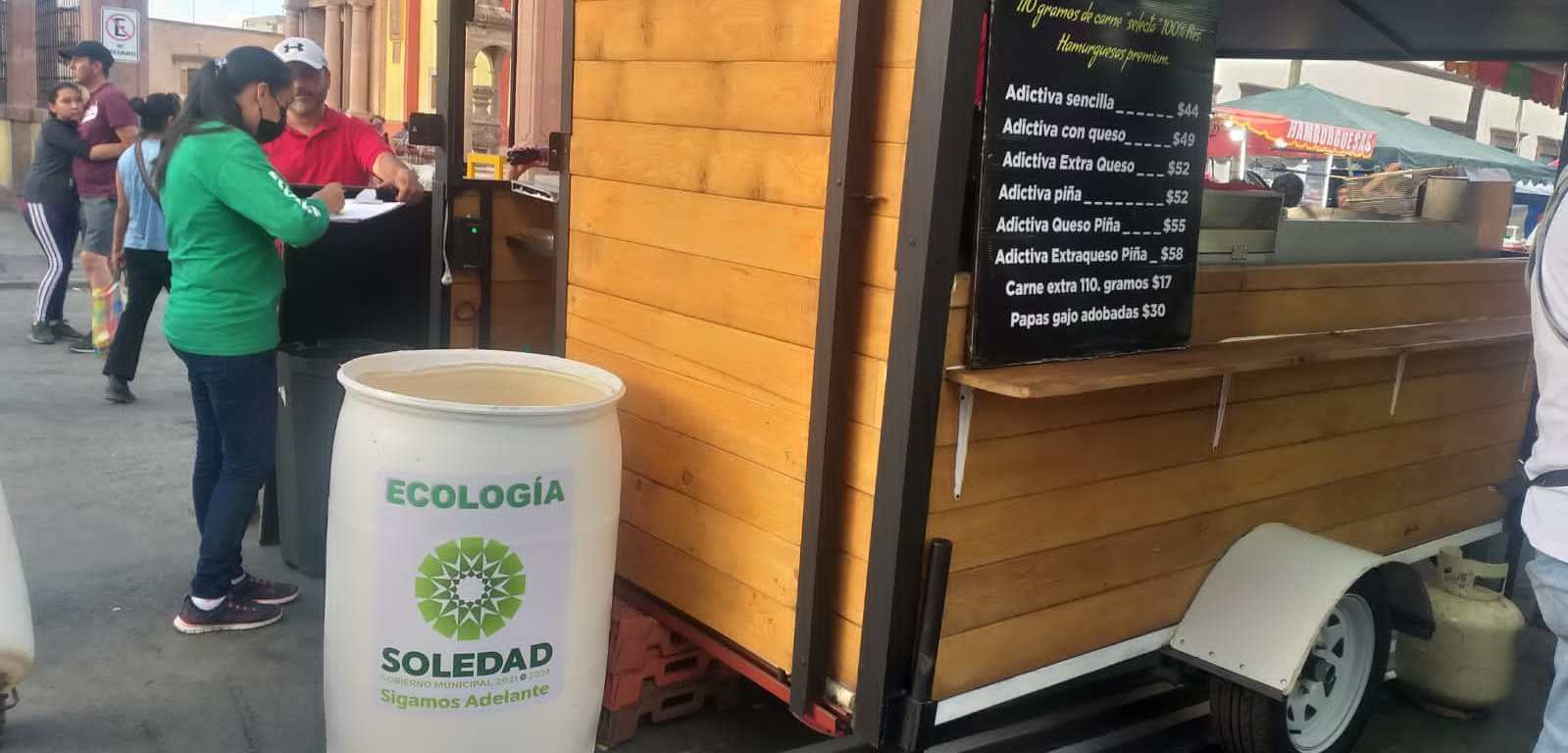 Por instrucciones de la alcaldesa de Soledad de Graciano Sánchez, Leonor Noyola Cervantes y con el objetivo de reducir los agentes contaminantes que dañan el medio ambiente, la Dirección de Ecología del Ayuntamiento del Soledad de Graciano Sánchez hizo entrega de quince contenedores plásticos a los comerciantes ubicados en la muestra gastronómica en los cuales podrán hacer la disposición correcta del aceite de cocina usado.