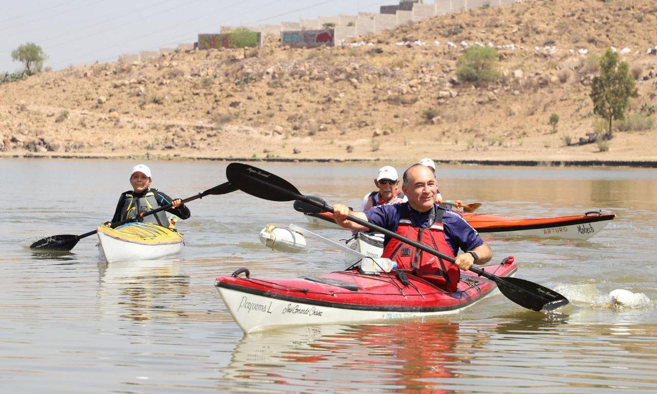Finalmente, representantes del deporte del kayak hicieron una demostración en el espejo de agua de la Cañada del Lobo, en donde se dieron cita corredoras, corredoras y ciclistas de diversas categorías, así como asociaciones de estas disciplinas.
