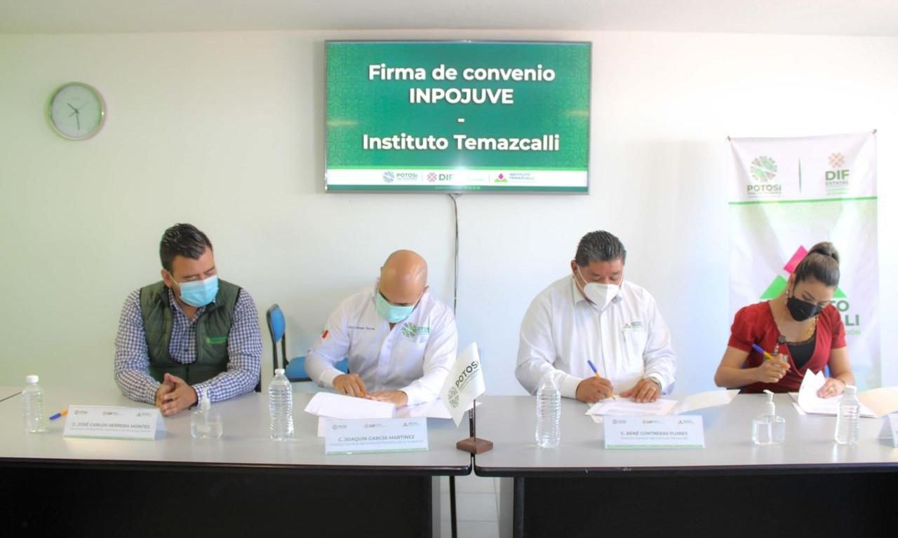 Con el objetivo de impulsar y fortalecer acciones en materia de prevención y atención de las adicciones en las y los jóvenes potosinos, el Instituto Temazcalli y el Instituto Potosino de la Juventud (Inpojuve) signaron un convenio de colaboración, como parte de la atención del Gobernador Ricardo Gallardo Cardona en la población adolescente.