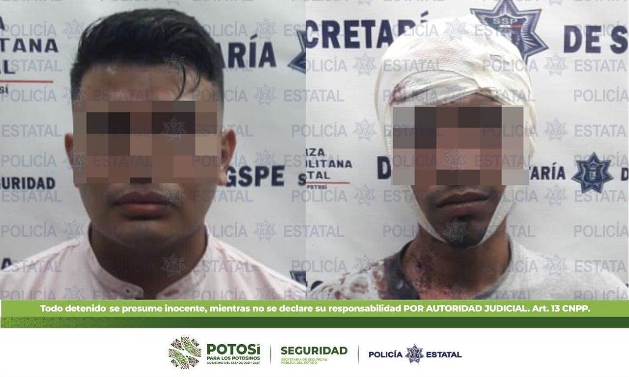 Derivado de la atención a un llamado de auxilio recibido en la Línea de Emergencia 9-1-1, Policías Estatales detuvieron a dos masculinos tras ser señalados como los presuntos responsables de allanar una vivienda, robar artículos de la misma y por lesionar a la afectada.