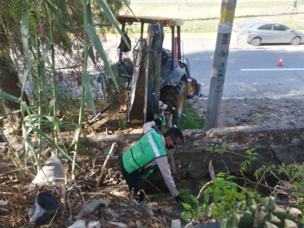 Así mismo, lleva a cabo tareas de barrido manual, desbroce, papeleo y recolección de desechos con maquinaria y vehículo. Lo mismo ocurre en bulevar Río Españita, en el monumento al Asta Bandera y en camellones centrales de la carretera 57 —en sus tramos con rumbo a carretera a Matehuala y a Ciudad de México—, en donde esta semana acumularon toneladas de residuos que representaban un riesgo para los conductores.