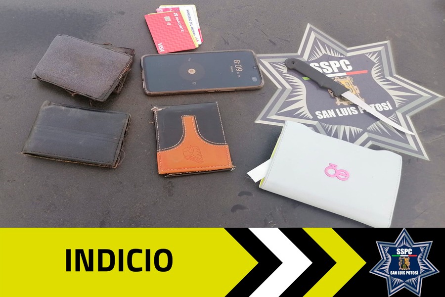Al realizar la revisión preventiva de seguridad, los agentes municipales encontraron a los implicados en posesión de tres carteras sin efectivo, diversas tarjetas, un teléfono celular y un cuchillo.
