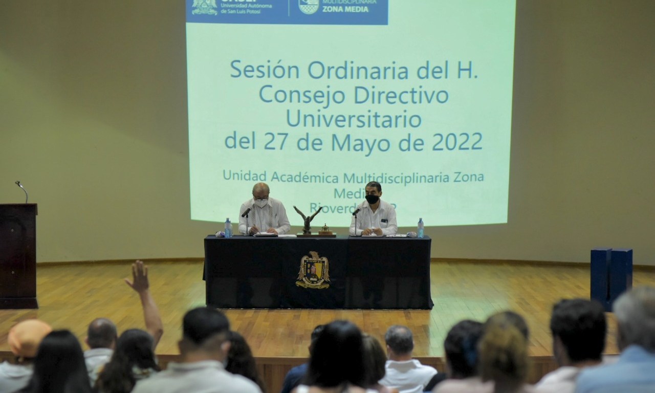 Con motivo del 38 aniversario de la Unidad Académica Multidisciplinaria Zona Media (UAMZM) de la Universidad Autónoma de San Luis Potosí, el H. Consejo Directivo Universitario realizó la sesión ordinaria correspondiente al mes de mayo en el campus Rioverde, donde se aprobó la capacidad de admisión para el ingreso del ciclo escolar 2022-2023.