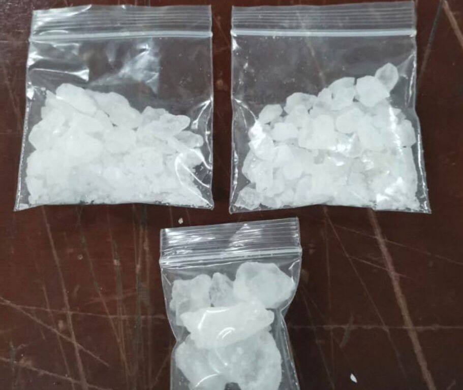 En avenida Salk y Andador Gibson en la colonia Nueva Progreso, se registra la detención de José de 37 años de edad y Brisbany de 28 años de edad, en razón de haberles localizado tres bolsss pláticas en cuyo interior había la sustancia granulada al tacto al parecer droga conocida como “cristal” con un peso de 42 gramos.