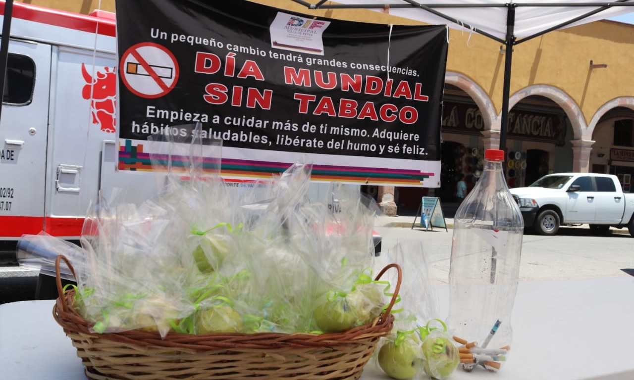 En el Día Mundial Sin Tabaco, el H. Ayuntamiento de Villa de Reyes y el Sistema Municipal DIF, se sumaron a la campaña “Una manzana por un cigarro” que se llevó a cabo en la cabecera municipal.