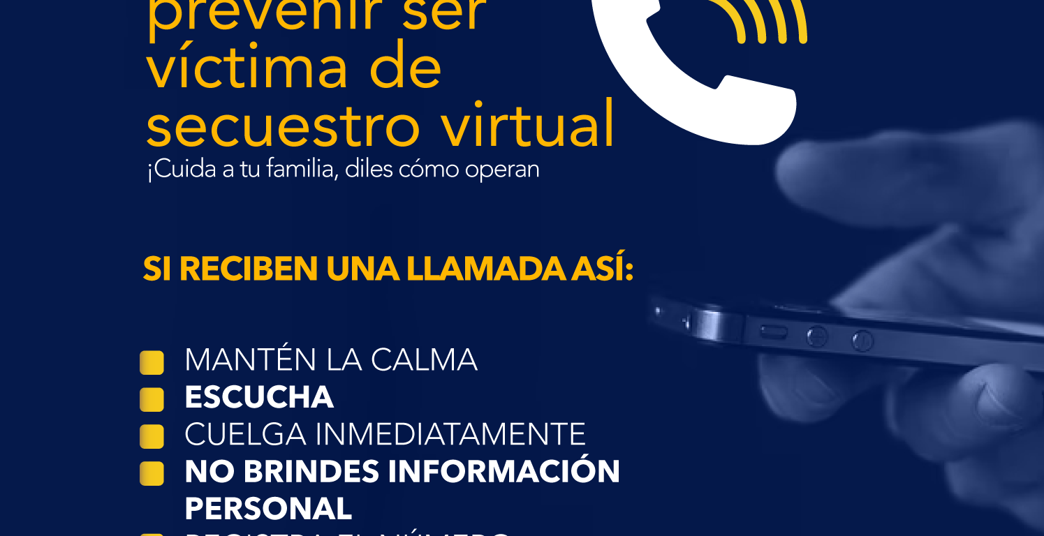 El llamado a la ciudadanía es a no hacer caso de llamadas telefónicas o mensajes por redes sociales, que de manera anónima piden dinero a las personas, con la amenaza de que tienen a un familiar privado de la libertad, o que saben dónde viven o trabajan y algo grave les va a pasar.