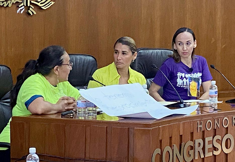 En su intervención, Mariana Noriega, integrante de uno de los colectivos, indicó que se busca el reconocimiento del término coauxiliar de salud para las mujeres que ejercen el trabajo de cuidado, ya que la mayoría no pueden contar con trabajo remunerado al no contar con una red de apoyo que permita el cuidado de sus familiares, aunado al incremento de gastos y no cuentan con prestaciones sociales, ni seguridad social.