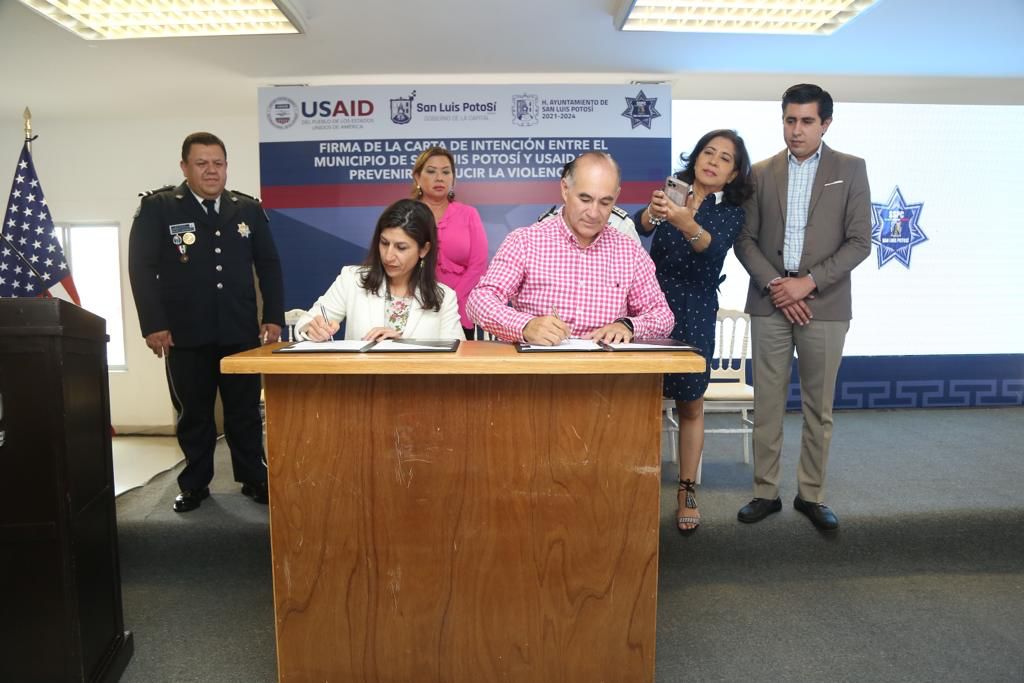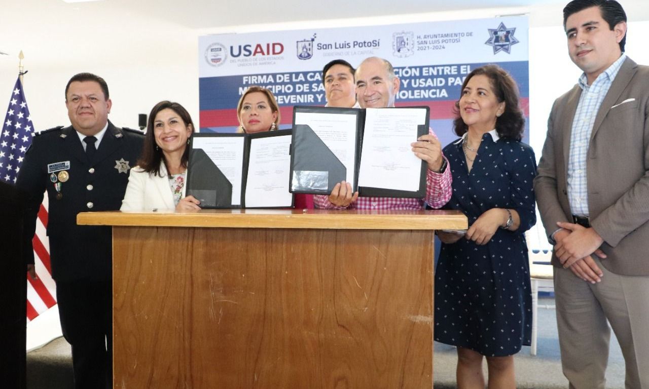 Como parte del nuevo modelo de policía y justicia cívica, que es una de las innovaciones inherentes a la creación de la Secretaría de Seguridad y Protección Ciudadana (SSPC), el alcalde Enrique Galindo firmó una carta de intención con la Agencia de los Estados Unidos para el Desarrollo Internacional (USAID), para prevenir y reducir la violencia, que constituye un paso muy importante en materia de capacitación para reforzar la seguridad y el bienestar de las familias potosinas, afirmó el alcalde Enrique Galindo Ceballos.