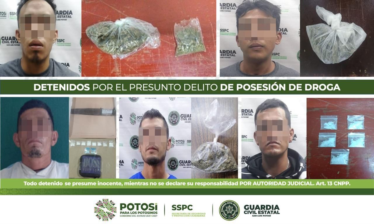 Como parte de la estrategia integral para inhibir la comisión de hechos delictivos en la Capital y su zona Conurbada, policías de la Guardia Civil Estatal (GCE) llevaron a cabo la detención de cinco personas en diferentes acciones, por el presunto delito de posesión de enervantes.