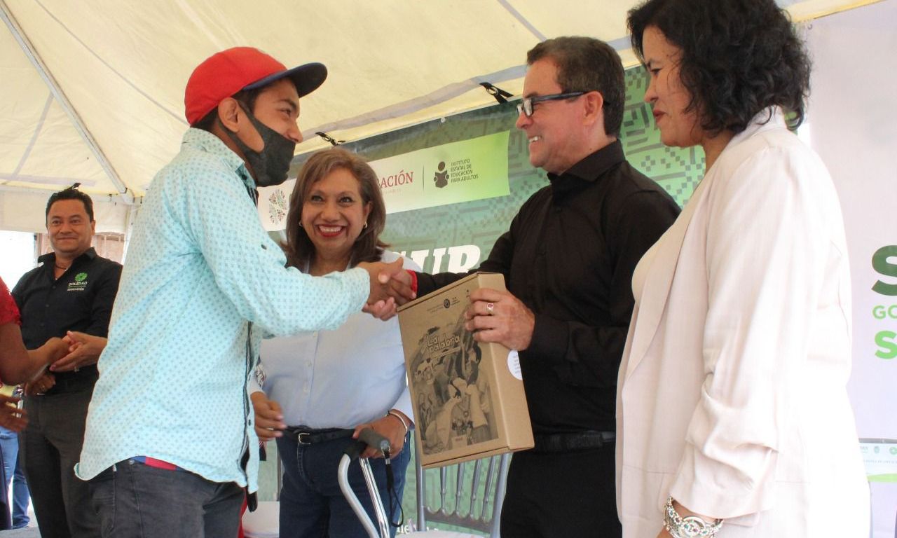 Por su parte, el titular del IEEA, José Luis Castro Castillo entregó certificados a las y los educandos que concluyeron su primaria y secundaria, así mismo se donaron libros por módulos a jóvenes del programa 10-14 para que puedan continuar con sus estudios: “con ello se garantiza que niñas y niños de 10 a 14 años de edad puedan continuar su educación, ya sea que por motivos de pandemia o causas externas no pudieron darles continuidad”.