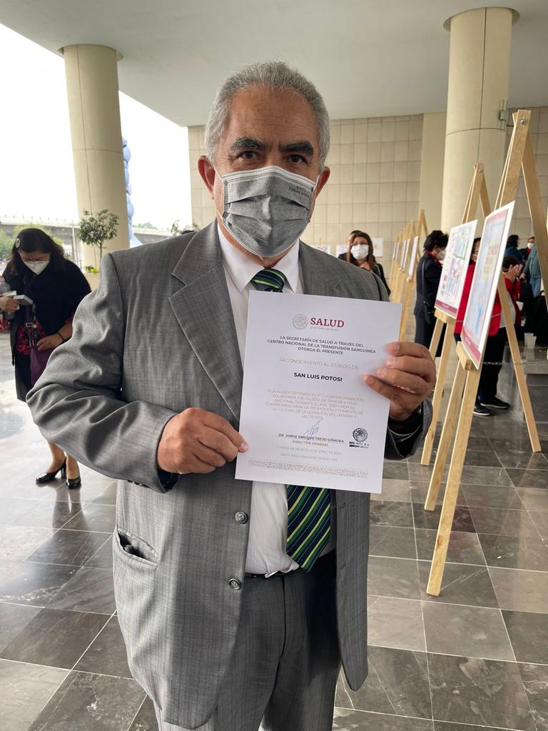 Este día, el Estado de San Luis Potosí fue reconocido por ser el segundo a nivel nacional por su contribución en la donación de sangre, en el marco de la conmemoración del Día Mundial del Donante de Sangre, galardón que entregó la Secretaría de Salud del Gobierno Federal y la Organización Panamericana de la Salud, en la Ciudad de México.