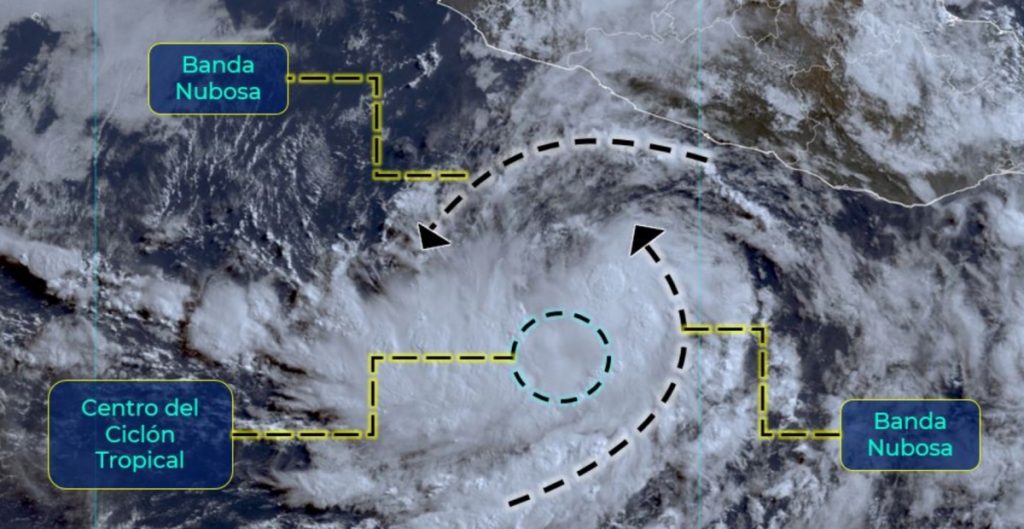 El SMN indicó que la circulación del ciclón provoca “lluvias intensas con puntuales torrenciales (150 a 250 mm) en los estado de Guerrero y Oaxaca; lluvias fuertes con puntuales muy fuertes (50 a 75 mm) en Jalisco, Colima y Michoacán, además de reforzar la probabilidad de lluvias fuertes en el centro del país”.