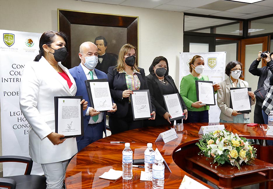 El Convenio fue firmado por la diputada Yolanda Josefina Cepeda Echavarría, presidenta de la Directiva del Congreso del Estado; la Magistrada Presidenta del Supremo Tribunal de Justicia del Estado y Consejo de la Judicatura, Olga Regina García López; el diputado José Luis Fernández Martínez, Presidente de la Junta de Coordinación Política, y la Directora y Representante del Instituto de Investigaciones Legislativas, diputada Emma Idalia Saldaña Guerrero.