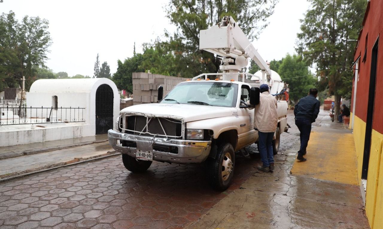 - Cuadrillas de Servicios Municipales realizaron trabajos de mantenimiento, limpieza y rehabilitación en los cementerios El Saucito, Españita y Milpillas, que se espera reciban entre 20 y 25 mil personas este fin de semana