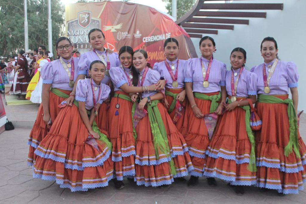 Las integrantes de la selección potosina y ganadoras son Mía Fernanda Gallardo López, Yaretzi Legaspi Saucedo, Bárbara López Vázquez, Bibiana Anahí Delgado Ramírez, Frida Natalia Cerino Ibarra, Valeria García Fajardo, María José López Carrera y la capitana Karel Elizabeth Zamudio Zárate, quienes recibieron indicaciones de su instructora Cecilia del Hoyo Venegas.