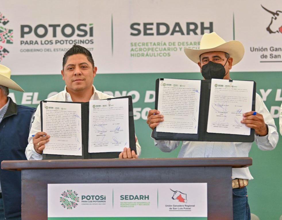 Luego de firmar convenios con las Uniones Ganaderas Regionales de San Luis Potosí y de la Huasteca Potosina por 28 millones de pesos bipartitos, para dotar de forraje y núcleo proteico al sector pecuario, el Gobernador del Estado, Ricardo Gallardo Cardona anunció históricos apoyos para fortalecer al campo potosino con un presupuesto total de 280 millones de pesos para las y los productores agropecuarios.