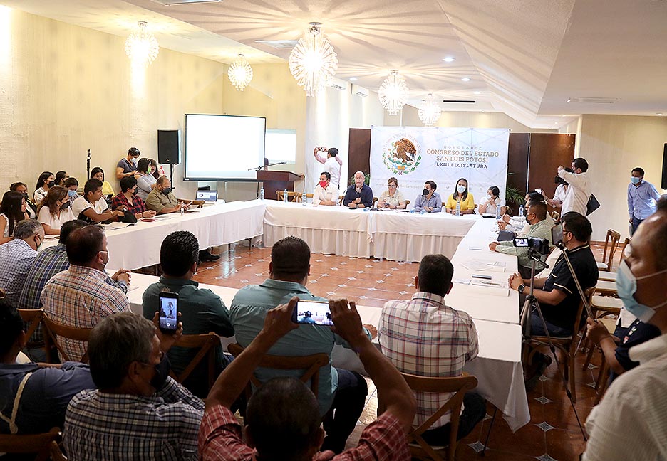 Con el objetivo de fortalecer la colaboración interinstitucional en la difusión efectiva de la Convocatoria para la Consulta a Pueblos y Comunidades Indígenas y Afrodescendientes, las diputadas y los diputados del Congreso del Estado sostuvieron una reunión de trabajo con presidentes municipales de la zona huasteca y media.