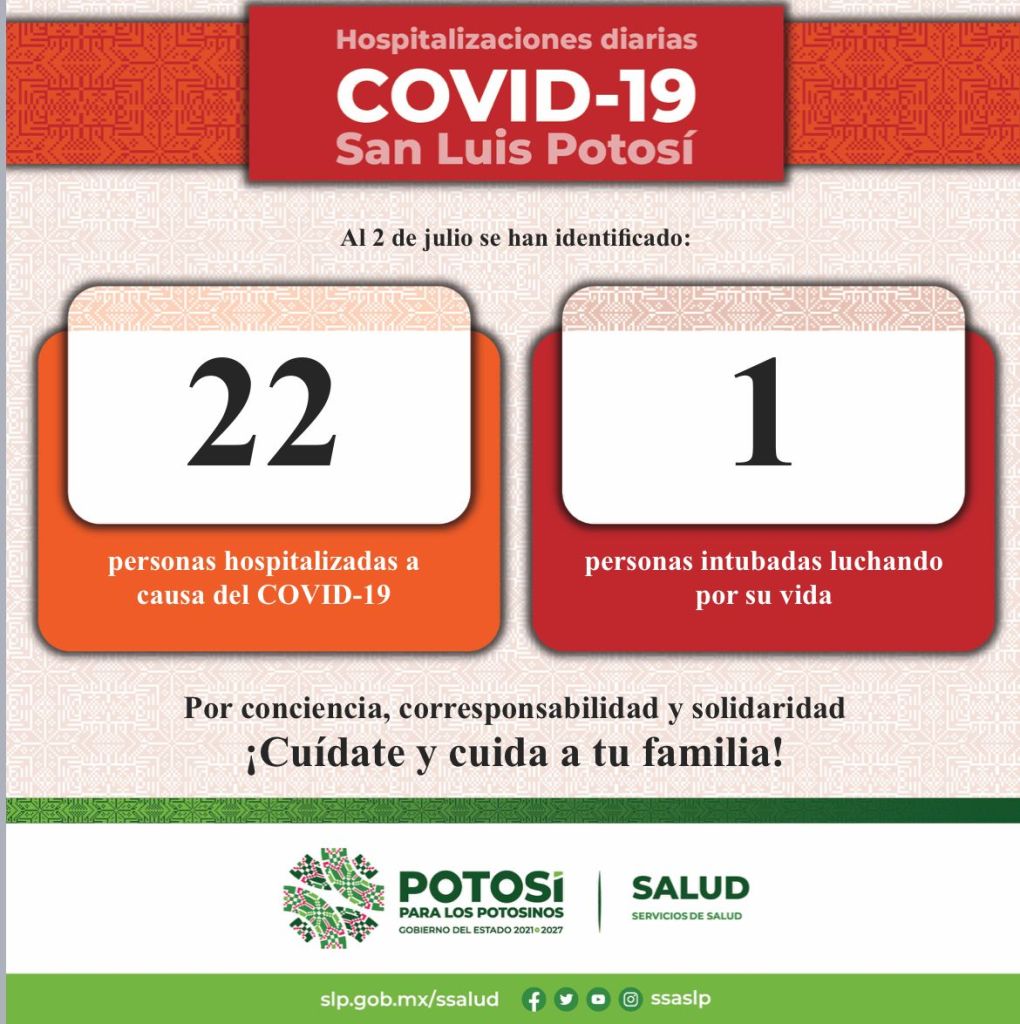 El Comité Estatal de Seguridad en Salud y los Servicios de Salud en el Estado, hacen un llamado urgente a las potosinas y potosinos a reforzar las medidas de prevención para contener la trasmisión de Covid-19, ya que en solo los primeros dos días de julio el número de casos suma el 26 por ciento de los totales registrados en junio, que fueron 4 mil 464.