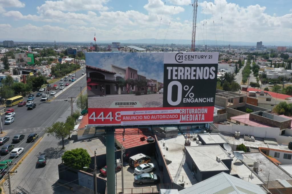 La Dirección de Comercio del Ayuntamiento de San Luis Potosí mantiene el Operativo de Ordenamiento Visual, para verificar que los anuncios espectaculares cuenten con las licencias y permisos contemplados en el artículo 48 del Reglamento de Anuncios.
