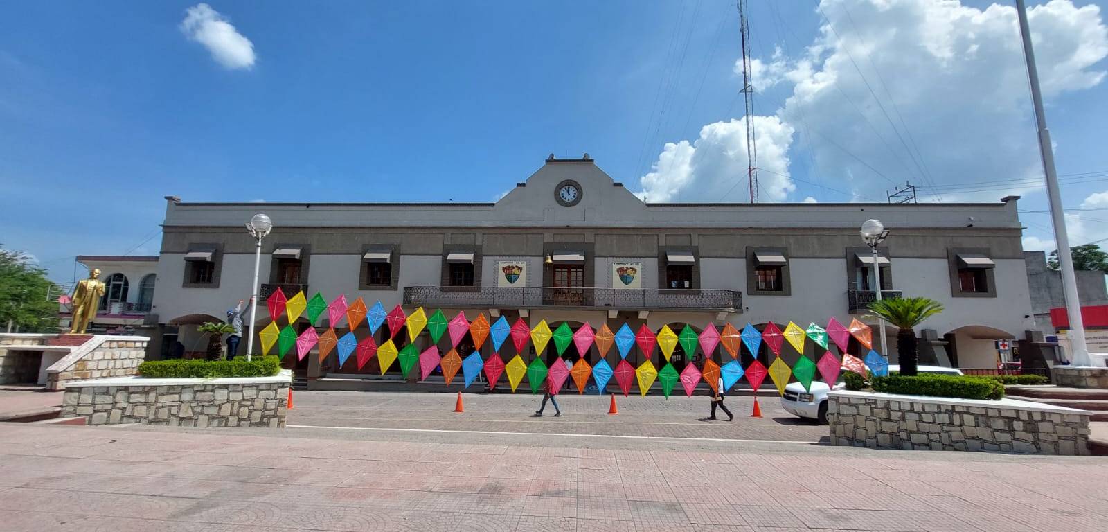 Y tiene como objetivo darle colorido a la plaza en el marco del 489 aniversario del municipio, y con ello recibir a los visitantes con esta imagen atractiva, añadió que, aunado a esto, estarán elaborando más decoraciones, que serán colocadas en el pabellón artesanal y las entradas principales de la feria.