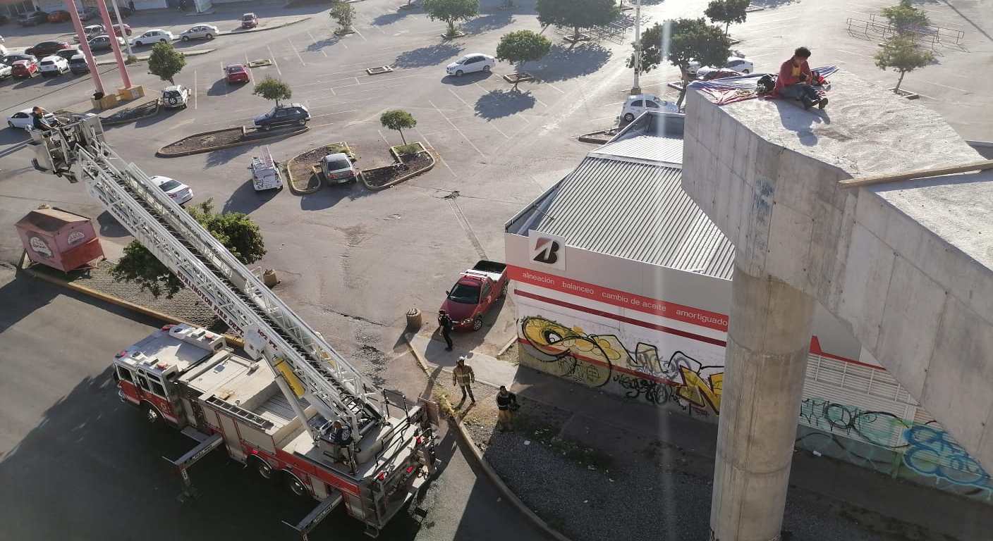 Como resultado de la coordinación y las maniobras de disuasión, se consiguió descender al joven de 21 años a bordo de la canastilla de la grúa perteneciente al Cuerpo de Bomberos, todo momento siendo resguardado por un agente municipal para bajarlo de una forma segura.