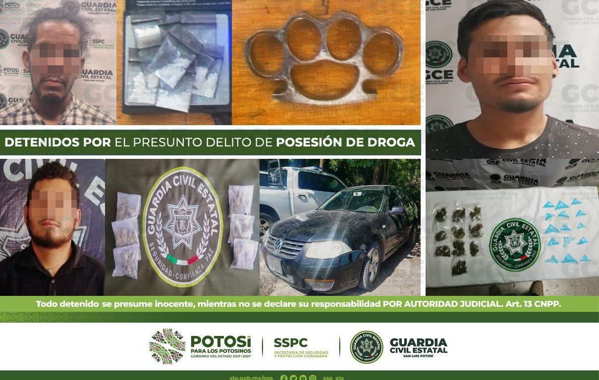 Derivado de los operativos desplegados en las cuatro regiones del Estado para inhibir conductas antisociales y prevenir actos delictivos, oficiales de la Guardia Civil Estatal (GCE), detuvieron a tres personas por presunta posesión de droga teniendo como resultado el aseguramiento de 39 dosis de estupefacientes.